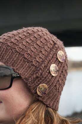 The hat is worked from the bottom to the top, using bamboo stitch. It starts off flat and is later joined in the round. The buttons only serve a decorative purpose, no buttonholes are required.