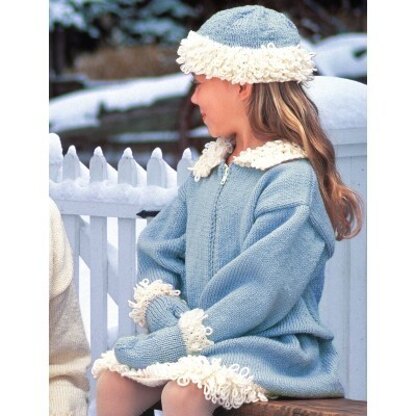 Girl's Loop Trim Jacket, Skirt, Hat & Mitts in Patons Classic Wool Worsted