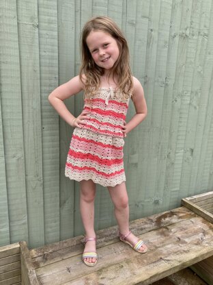 I designed this pretty little set for my daughter to wear for a wedding. Crocheted in beautifully soft Sirdar Stories DK, the cami top goes great with denim shorts, or purchase the chevron skirt pattern, if you'd like to create the set.