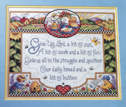 By Sandy Orton. Give Us Lord - PDF Downloads\nBring sunshine and the warmth of country into your home with this Counted Cross Stitch sampler. The verse, "Give us Lord, a bit o' sun, a bit o' work, and a bit o' fun, Give us all in the struggle and the sputter, our daily bread and a bit o' butter."