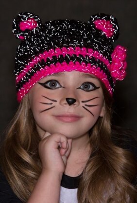 Glam Black Cat Hat in Red Heart Reflective - LW4447