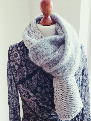 Der feine Glanz des Bambusgarns und die glitzernden Pailetten im flauschigen Mohair bringen ein bißchen Glamour in den Tag. Der breite Schal lässt sich auch als Schultertuch zum Kleid tragen und wärmt an kälteren Tagen.