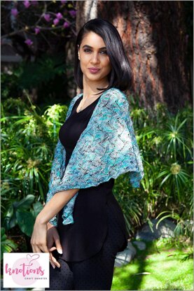 Glass ripples is workable in any yarn weight, numbers given below are just an estimate. Work it as large as you want, at a gauge that feels comfortable to you. Fingering US 4 (3.5 mm) [24 sts = 4”] 400 yds (366m)
