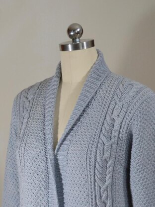Intertwining cables and uncomplicated texture combine beautifully to create a cozy, wearable cardigan. Finished with a classic shawl collar, this sweater will become a wardrobe staple - bundle up for an autumn walk or a quiet Sunday at home.