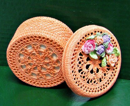 I've been making small crocheted treasure boxes for about 20 years, but when a good friend requested one for her mother I knew I couldn't use just the standard pattern I had been using. It needed to be a special piece for a special lady!