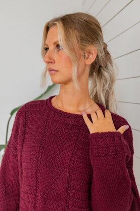 Gloucester Gansey combines classic elements like traditional patterning and drop-shoulder sleeves for the typical “gansey look” with a contemporary, loose fit. This seamless pullover is a forgiving sweater to wear with a split high/low hem, and deeply shaped shoulders for a tapered drop at the upper arms.