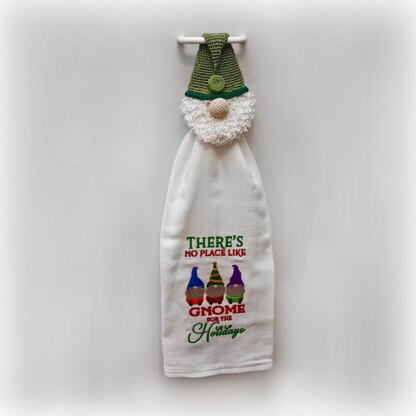 Gnome Towel Hanger adds a bit of whimsy to your holiday kitchen. Hanger allows for towel to be removed for laundering and accepts any size towel.