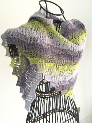 The shawl measures approximately 144cm by 44cm (57in by 17in) after blocking. The size is easily adjustable.