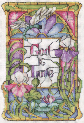 By Barbara Baatz Hillman. God is Love is written in the center of this stained glass style design. The subtle colors blend beautifully with the sweet flowers and vines that surround the sentiment. A dragonfly hovers nearby for an elegant view through this lovely window.God is Love is written in the center of this stained glass style design. The subtle colors blend beautifully with the sweet flowers and vines that surround the sentiment. A dragonfly hovers nearby for an elegant view through this lovely window.