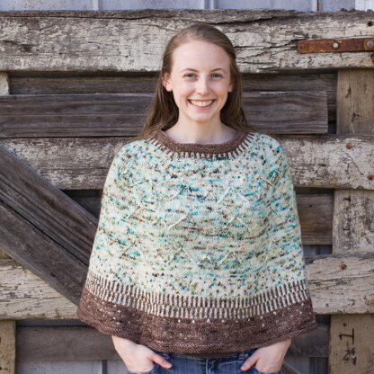 The bust measurement shown is the actual body bust measurement. The poncho is designed to include 5 in / 12.5 cm positive ease at the bust with arms down. If your bust size is not listed, select the next size up from your measurement. The sample shown in the photos is the smallest size (34” / 86.5 cm bust circumference) on a 34” bust.