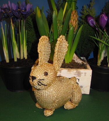 This is my Golden Bunny knitting pattern. This cute little bunny is just 7 inches high and 6 inches long so can sit comfortably in the palm of your hand. Its a simple design that can actually be knitted in any gold yarn but I could not resist the fabulous Gold Ayda Simili Kordenet which I found worked best on 2.5 mm needles. Make everyone hopping mad with envy by making yourself one of these!!!!