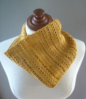 Why should I make this: The Golden kerchief is a simple accessory to highlight a beautiful 100% mulberry silk yarn. Designed to dress up a summer t-shirt, this kerchief will keep your neck warm & add a touch of luxury to your outfit.