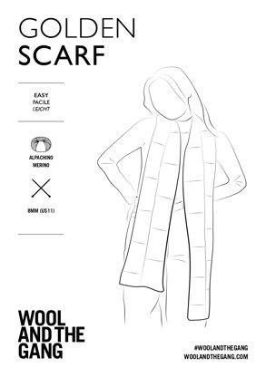Golden Scarf in Wool and the Gang Alpachino - Downloadable PDF is a free Beginner Knitting pattern by Wool and the Gang, available as a Downloadable PDF and includes instructions in English, French, German. Super fun to make, this pattern could be your next masterpiece!