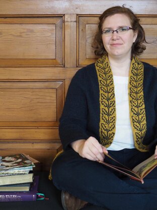 Sample uses Kelbourne Woolens Scout (100% Wool; 274 yd/251m per 100g/3.53 oz ball) in the following: MC: Navy Heather (412) - 5 (5, 5, 5)6, 6, 7, 8) skeins CC: Sunflower Heather (709) - 2 skeins