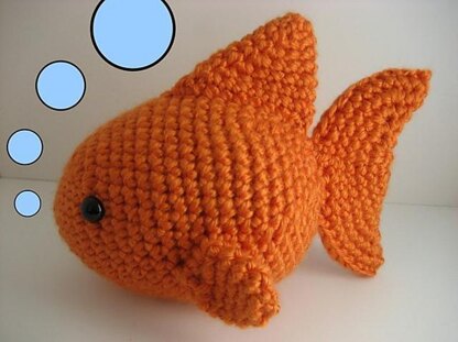 This amigurumi goldfish toy is super easy and fast to work up. Crocheted in a spiral with orange worsted weight yarn, a size 4.25 crochet hook, 2- 9 mm safety eyes and polyfill stuffing- that's is:)