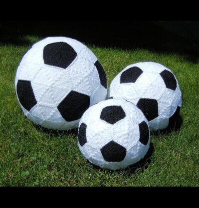 Make one for your favorite soccer fan! Fun Soccerball – Futbol, in three sizes, made of separate hexagons and pentagons which are sewn together to create this great ball. Use as a pillow or toy. Gauge: Pieces are worked at a tight gauge to keep them firm. Exact gauge is not important but will affect the finished size of the ball. Hexagon measures (2.75, 3.5, 4.25) inches from point to point, straight across. Pentagon measures (2.25, 2.75, 3.25) inches from one point to the center of the flat edge across from that point. Sturdy acrylic recommended (little stretch).