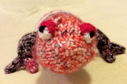 The gauge for the pattern was calculated using smaller needles (US size 6/4 mm) with the suggested yarn. Using smaller needles than the size indicated on the yarn sleeve creates a sturdier body that will hold its shape when stuffed. Yardages are 128 yards for the main part of the body and 32 yards for the contrasting stripe.