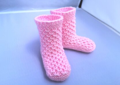 Gorgeous booties for babies. Booties are knitted on 2 needles. Then you will need to sew them. The pattern in PDF contains 4 sizes of booties with a detailed description and photo.