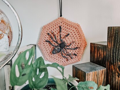 Bring a touch of the macabre to your home with the Gossamer Wall Hanging Crochet Pattern! A 3D spider specimen design that blends crochet artistry with natural history charm. Inspired by dark academia and gothic cottagecore aesthetics, this unique wall hanging combines mixed media techniques like wire shaping, layering multiple yarn weights, and subtle stiffening to create an elegant, dimensional fiber sculpture.