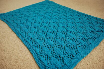 The pattern includes both written and charted instructions for the lace as well as directions on how to enlarge the blanket.