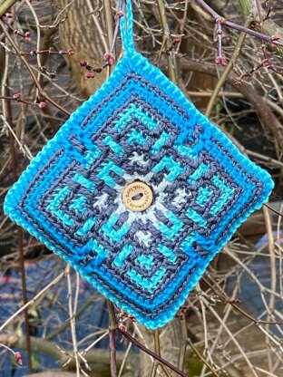 This pin cushion is worked in the round using the overlay mosaic crochet technique to create this beautiful gothic style pattern.