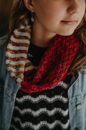 Goya Cowl is worked in the round, like a tube that’s seamed at the end. The two color striped pattern compliments an easy but effective lace panel. Pick three colors you like and cast on - the combinations are endless.