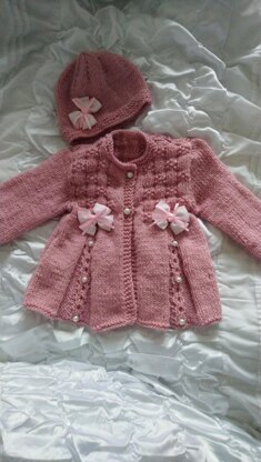Size Guide: The pattern for a Hat and Swing Style Coat and has instructions to fit 16″, 18″, 20″ and 22″ chest.