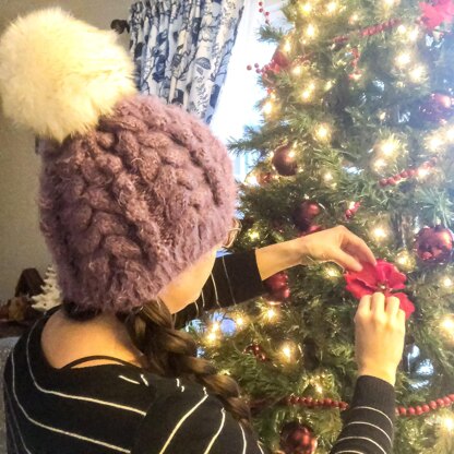 Add a yarn pompom or a faux fur pompom - the pattern includes instructions to make your own faux fur pompom.