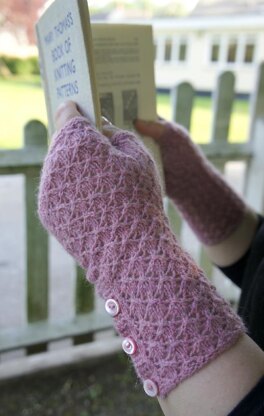 Though the Grace mitts were designed for slightly rustic or woolly yarns to give them that old-fashioned feel, they will work with almost any fingering-weight yarn. They feature an easy-to-memorize lace pattern, a fully patterned thumb gusset, and a vintage-style buttonband. Customize your Grace mitts with buttons that accent your own personal style, whether you wear them with a sweatshirt or an evening gown.