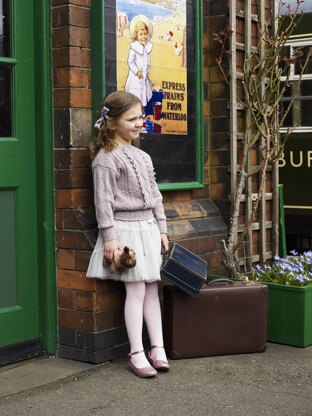 From the Knit Rowan website: Knit and crochet this pretty children sweater from ONCE UPON A TIME. Designed by Marie Wallin using the gorgeous Felted Tweed yarn, this sweater has an all over twisted stitch, cable and textured stitch pattern, deep welt and cuffs and the option to add a crocheted trim panel to the front.