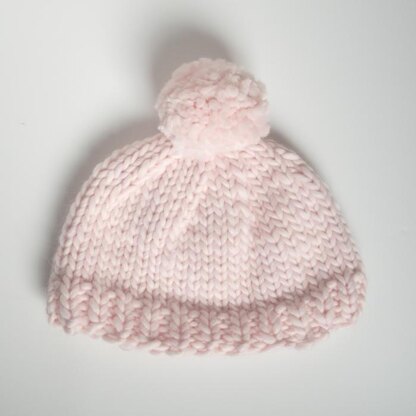 A perfect quick gift or first hat project; this is the softest and squishiest of warm winter hats, knit with super bulky yarn and finished off with a giant pompom.