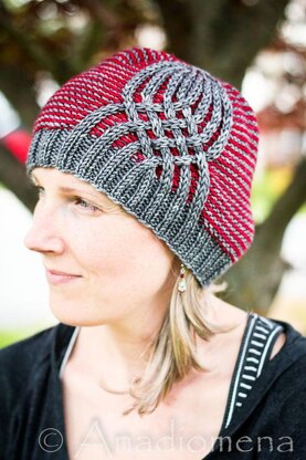 The hat is made beanie style and is completely seamless. It is worked from the brim up, where stitches are slipped and cabled along the way.