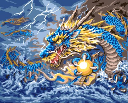 Intermediate Mythical Dragon Tapestry kit by Grafitec. Kit contents: Screen printed 10ct Duo tapestry canvas with DMC thread suggestions