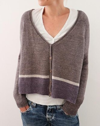 gramps revive is worked seamlessly from the top down. First increases are worked (on both RS and WS) along the shoulders until final shoulder width is reached. At the same time the V-Neck shaping starts and continues while back and fronts are worked separately to underarm length. At the underarm, fronts and back are joined to work the body in one piece down to the split hem, where 2 contrast colored blocks are added. Stitches are then picked up around the front opening and neck to work the button band. After finishing the button band, you may want to block the cardigan to decide if you want to add sleeves or not. If desired, pick up stitches around the armhole and work the sleeves top down in the round to the cuffs last. Note: As this cardigan (vest) is designed to have a lot of ease, make sure that you work the sleeves to a rather tight fit.