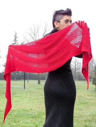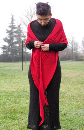 Grand Prix is an asymmetric, crescent shape shawl worked from the top edge down to the short row edging, with increases at both ends. The pattern features relaxing garter stitch and lace short row inserts for an uncommon shaping.