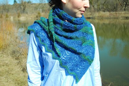 Inspired by the changing face of the Grand River as it winds its way through Southwestern Ontario (passing less than a kilometre from Wellington Fibres), this stole combines two engaging lace patterns with calming sections of garter stitch in varying widths. It starts at the widest point, and decreases rapidly. So, like the river, you follow the path of least resistance - downstream.