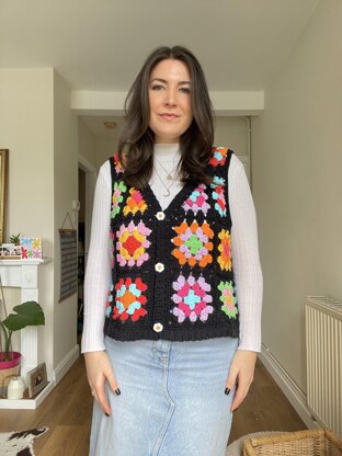 Crochet pattern to create my granny squares waistcoat with ribbing and buttons. The pattern also shows you the alternative version in the pictures. A real versitle pattern with a vintage feel!