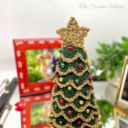 Create a charming, small, realistic Christmas tree with this easy beginner-friendly crochet pattern inspired by Grandma's traditional vintage design! Perfect for adding a handmade holiday charm to small spaces like desks, shelves, or mantels, this simplified 3D mini tree works up quickly with #4 worsted-weight yarn and features a delicate gold edging and star topper. Customize your festive decor with glass beads, mini ornaments, or any embellishments that match your style—making it ideal for holiday decorating and handmade gifts that bring nostalgic Christmas magic to every corner of your home.