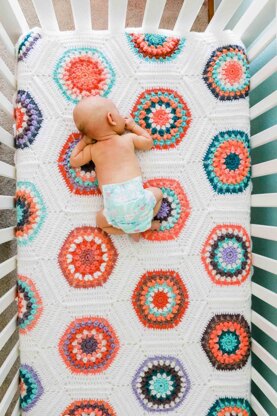 Whether you have fond memories of the Grandmother’s Flower Garden Quilt pattern or you simply like the vintage spirit of scrap quilts, this meditative pattern will have you “hooked!” Each hexagon is worked individually and joined as you go for a mediative, portable project that’s easy to make any size you wish. Two complimentary skeins of cake yarn offer a varied palette and create the scrappy look without having to deal with the variability that actual yarn scraps create.