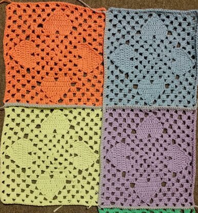 Traditional granny meets modern This fun design can be sewn together and made into a blanket as big or as small as you like Using DK and a 4.25mm hook the square is 8X8 inches