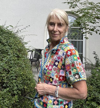 The Granny Menton Cardigan is worked seamless - make 1 granny square and connect all followings. You can vary the size of the cardigan easily, e.g. add more granny squares for a larger size. Finally the front band is worked around the edges. Also the small collar.