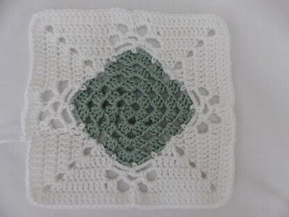 Granny Number 8 ist ein Granny, welches mit zwei Farben gehäkelt dir eine schöne Raute zeigt.