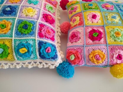 Crochet these two colorful Granny Rose Pom-Pom Pillows including two border options and two rose options. These two instantly downloadable patterns will teach you step-by-step how to complete and join two or three-color granny rose squares and includes information on how to make two different fun pom-pom borders. The 12 and 20-page patterns include plenty of photos, as well as, several links to videos for extra added assistance. Additionally, you'll find a one-page abbreviated version of the granny rose squares in each pattern.