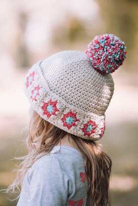 A fun hat that uses the traditional granny square motifs we all know and love to create a cute brim.