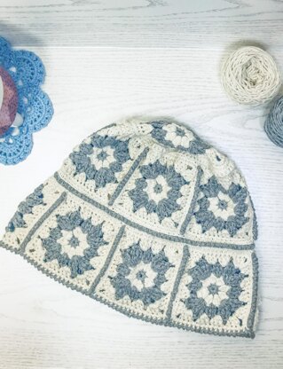 Crochet Pattern for a beautiful Granny Square Bucket Hat. Pattern includes written instructions and reference photos.