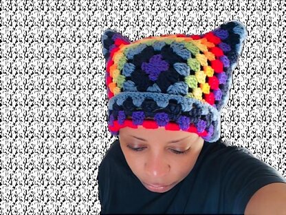 This is the easiest beanie you can ever make using two granny squares and �nished with two rows to make the cat ears. The great thing about the pattern is you can customize it with as many colors as you would like making it a great stash buster.