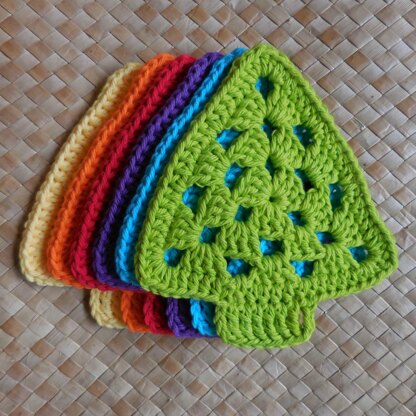 I love all things Granny! Since I’ve already designed 2 different Granny Hearts AND a Granny Star, it was obviously time for a Granny Tree. Obviously. This very versatile motif makes an adorable adornment or a fabulously fun set of coasters. Plus, with a slight adjustment, it makes a rather brilliant bunting ^_^