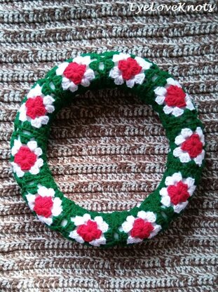 This wreath is based off my Granny’s Patriotic Wreath - just a fun, Christmas version.Materials You'll Need: Small Amount of Worsted Weight Yarn (I used Red Heart's Super Saver in Paddy Green, Cherry Red, and White), G6/4.25mm & H8/5mm Crochet Hooks, Tapestry Needle, Hot Glue Gun and Sticks, Embellishments, 12" White Wreath FormYarn Alternatives: Bernat’s Super Value Yarn, Caron’s One Pound.