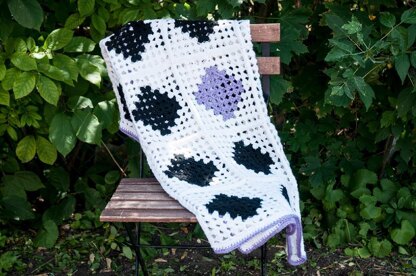 This blanket, whose colors recall the black and lavender tiles of my grandmother’s vintage bathtub, is a simple, versatile design that can be easily customized to use any number of colors and be made in any size and weight of yarn.