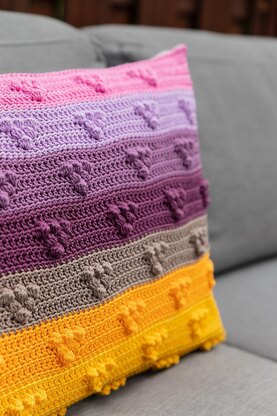 As a feature pillow that brightens up the room, the Grapevine pillow uses the most basic of stitches and one special stitch to create little triangle drops of interest. Using my colours or with your own gradient, your pillow will be an absolute eyecatcher!